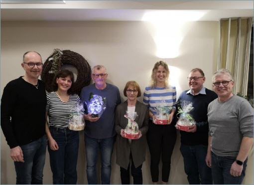 Jubilare 2024 Wir konnten gratulieren: Für 25 Jahre Mitgliedschaft: Emma Vogel, Lena Kress, Marita und Paul Storch. Nicht anwesend: Armin Fischer, Thomas Wuma Mahr, Rainer und Karin Hillenbrand, Wolfgang Kress. Für 25 Jahre Vorstandsarbeit: Erhard Adamczyk